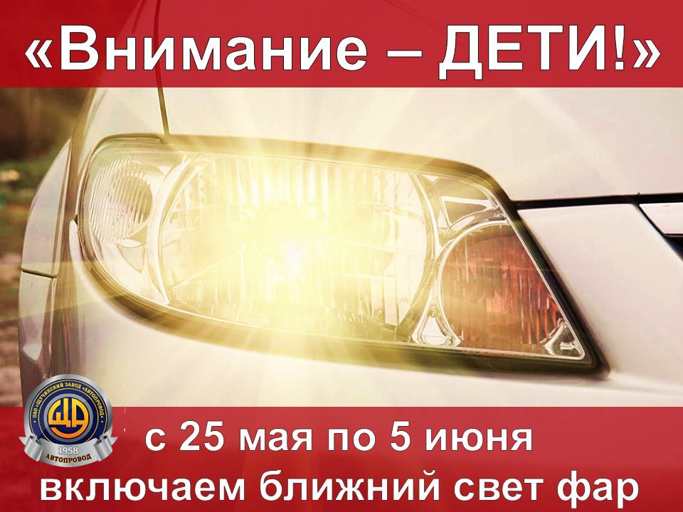 В связи с окончанием учебного года традиционно с 25 мая по 5 июня в стране проходит акция «Внимание - дети!» в целях предупреждения детского дорожно-транспортного травматизма. В дни акции водители в светлое время суток должны осуществлять движение на автомобилях только с включенным ближним светом фар. Кроме того, особое внимание госавтоинспекторы будут уделять соблюдению водителями скоростного режима, правил проезда пешеходных переходов и безопасной перевозки детей.